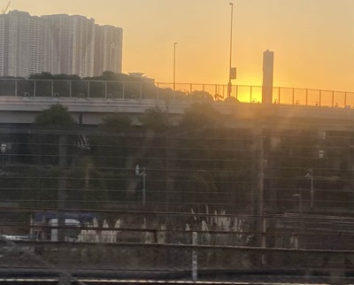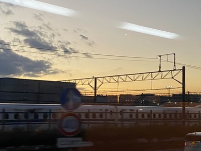 東の空が赤くなるのが見える。6時18分平塚あたり。日の出は6時50分。横浜かなあ?