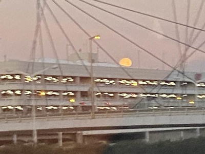 羽田空港第1ターミナルには6時51分着。月が低い位置にあって大きいなあと思ってiPhoneで撮ったらそうでもない。やはり人間の目と写真は違う。