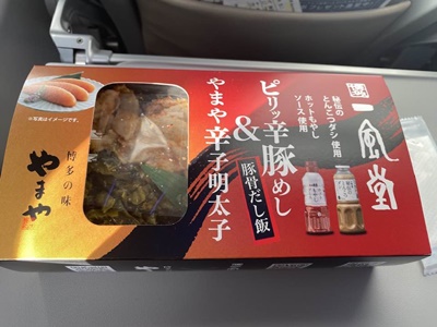 腹減ってしまったので朝は空弁にすることに。「一風堂 ピリッ辛豚めし&やまや辛子明太子」なるもの。なんで羽田空港はここまでやまやが幅利かせてるのか?