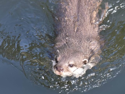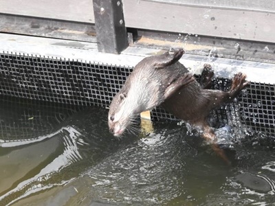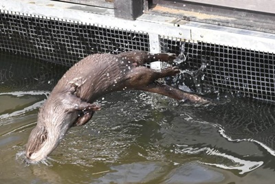 新しくできたカワウソ飼育場「オッターサンクチュアリ」に直行。広い。象も飼えるくらい。