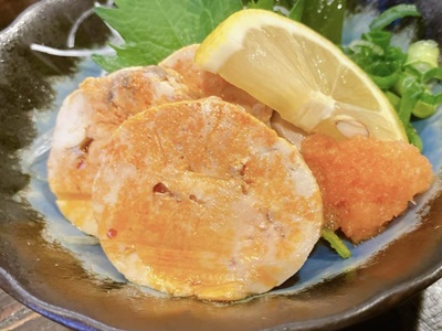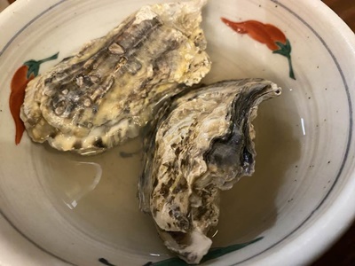 駅から遠いし寒いので「鳥好」方面はやめて、地下道渡ったすぐのとこにあった「魚炉八」という居酒屋に入る。「予約はしてますか?」とか「今は混んでて」というから田舎によくある1人客拒否かと思ったら単にそういうしゃべり方する人で、すぐに席用意してくれた。お通しがカキの酒蒸し。