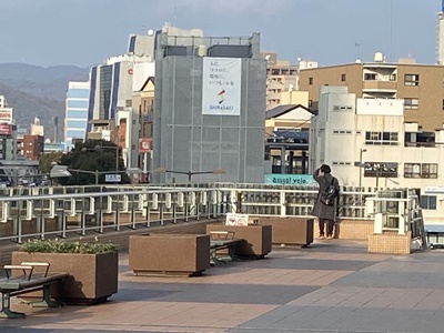 15時10分岡山駅に戻る。ふじわらのみいが高校生時代座ってたベンチはこれか?建物内のか?