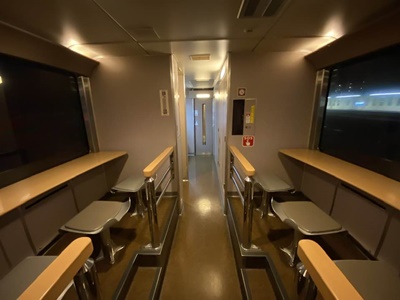 3号車。ラウンジを高校生?の集団が占拠してた。途中からの乗車だからなあ、しゃあない。