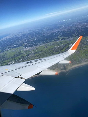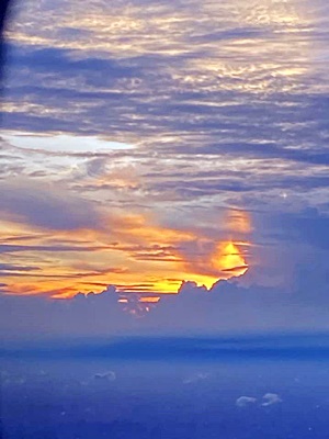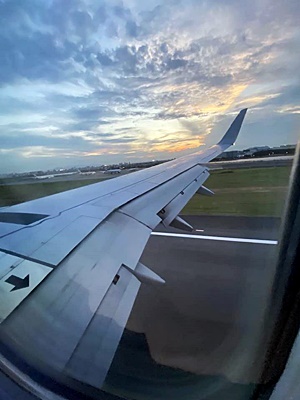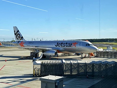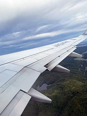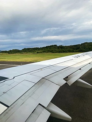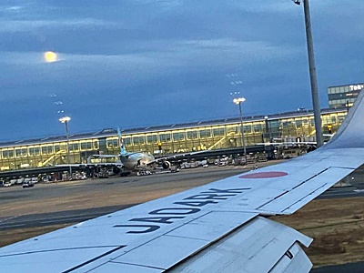 満席。すごい勢いで冷房。隣の若い男が離陸前というのにテーブルは広げるわリクライニングは倒すわ。当然携帯も彼女に注意されるまで機内モードにはしない。飛行機知らないのか?