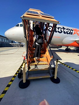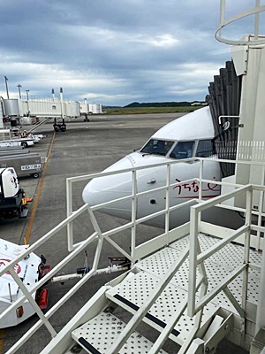 25分搭乗開始予定がちょっと遅れて30分過ぎ搭乗開始。ゲートから階段を降りて、