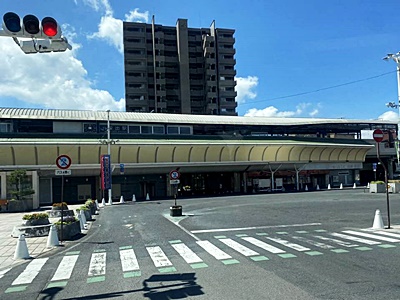 宇多津駅南口で降りる。カンカン照り。おか泉は歩いて10分。