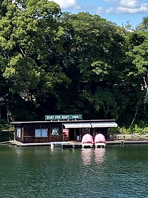 ふじわらのみいが1人で漕いでいた桃ボート。