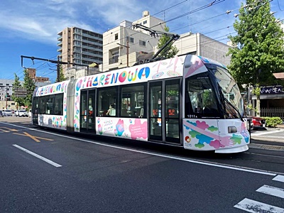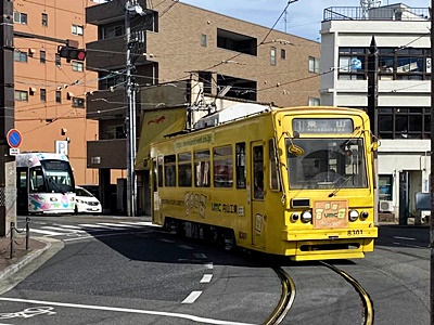 広島のグリーンムーバーみたいな2両連結低床車がやってきた。岡山で見るの初めてかな?