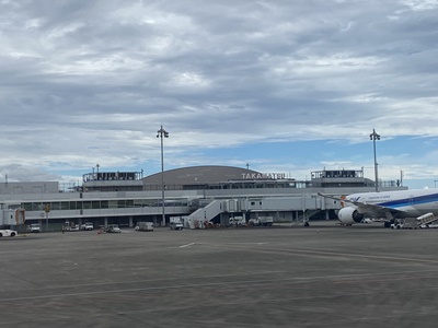 高松空港。案内図にはあったゆうちょのATMが見当たらなかったので財布の中の最後の1000円でバス券買って40分の高松駅行きに乗車。