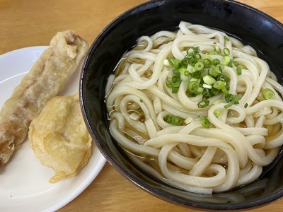ふじわらのみいが四国一周動画で食べてたかけうどん大、ちくわ天ととり天。夏だけどだしを味わうためにかけうどん。普通に美味かったのでJKみいちゃんをイメージすることなくさっと食べてさっと出てしまった。