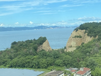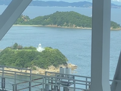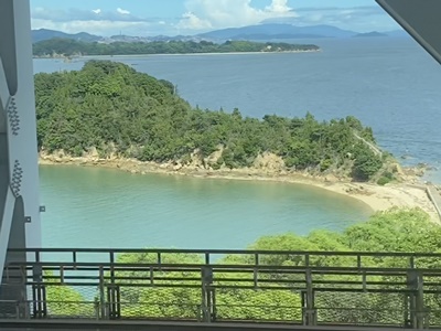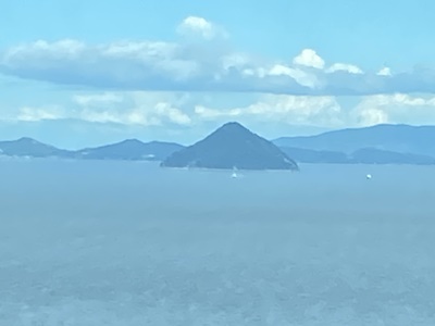 さすがに二階席は景色がいい。これは粟島?