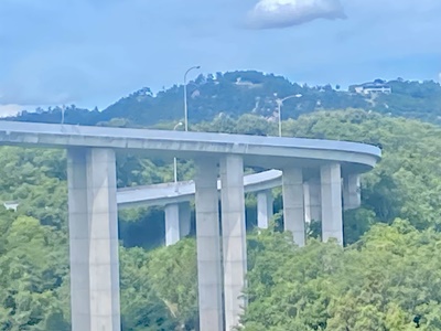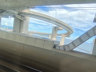 ループを描く車道。岩黒島?