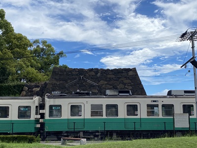 続いては玉藻公園。ことでんが高松築港駅を発車して行く。