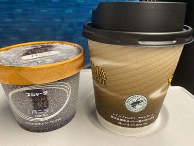 岐阜あたりでようやく車内販売が来た。もう買う機会ないかもしれないのでシンカンセンスゴイカタイアイスとホットコーヒーを買ってアフォガートに挑戦。