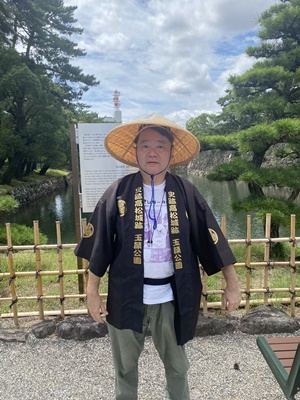 三の丸側から天守台。ここでうちわは裏側を掲げてここからの天守をイメージ。