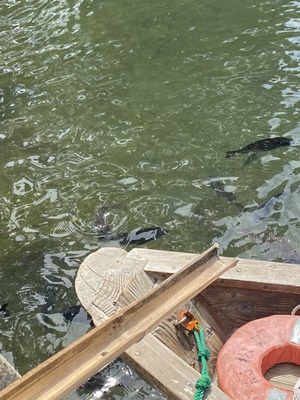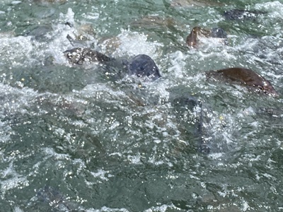 ここで船頭さんが大量のエサを撒き魚狂喜乱舞。