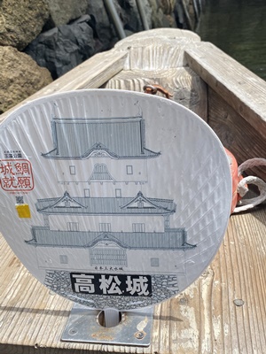 天守のイラストが描かれたウチワが備え付けてあり、あとタイのエサも支給。一個買っていたが「もったいない」と言われてしまった(後でその通りになる)。