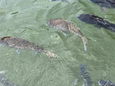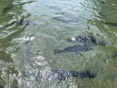 エサを投げると我先に飛びつく姿が間近で見れる。
