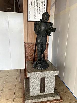 駅の入り口に二宮金次郎像。