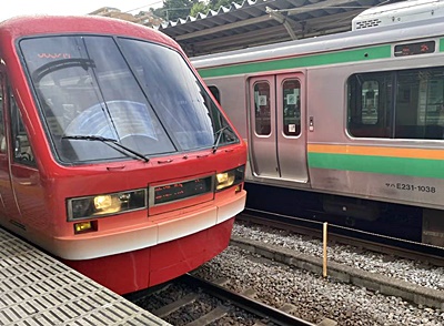 15時26分の東海道線に乗る予定だったが、早く食べ終わったので改札に行くと14時48分に出る電車があった。ので、乗る前に東華軒の売店に寄る。金目鯛西京焼弁当は売り切れていて、キンメの入った小田原提灯弁当を勧められる。誰かYouTuberが紹介していたのでそれを買って東海道線に乗り熱海に。1500円だったが仕方ない。遠征は何かと(主に食費)予算より金がかかる。伊東線のホームに上ると乗車券だけで乗れる豪華列車リゾート21が来るとところ。