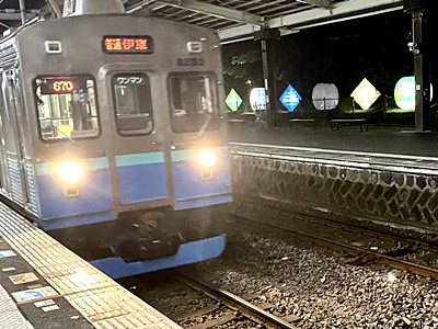 20時に待合室を出てホームに。7分に伊豆急行乗車。東急車両。