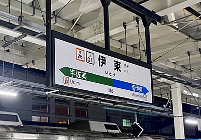 20時33分に伊東駅到着、向かいに停まっていたJR伊東線に乗り換える。
