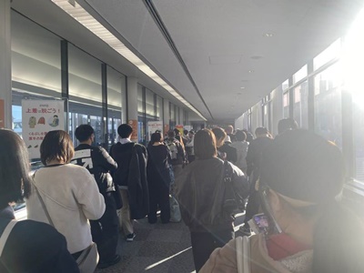 29分成田空港駅着、すぐに第1ターミナルに向かいアプリでチェックインするが、保安検査場が激混みで、終わったのは8時5分。すぐに搭乗口に。トイレに行くことばっかりに気が取られて飲み物買うの忘れた。Peachじゃ飲み物ただではくれないのに。