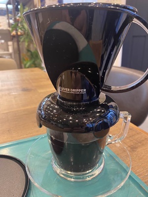 その辺に座る気もなれないのでちょっと歩くとエディオンアリーナの南側の交差点に「コラコーヒー」という新しめの喫茶店があったので入る。砂時計が付いてきたので不審がると「時間が経ったらカップの上に乗せてください」と店員。砂時計が落ち切ったのでフタを開けると中にはフィルターと粉とお湯。注ぐわけではないようだ。カップの上に置いてみるとドリップが始まる。おおお。よく見ると「CLEVER DRIPPER」と書いてある。決まった大きさのカップに乗せると下が開いてコーヒーが落ちるが、それ以外の時はこぼれない仕組み。不思議だ。