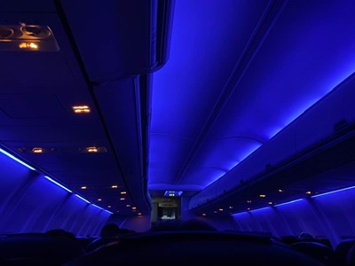 夜の離陸というので一瞬灯りが消える。
