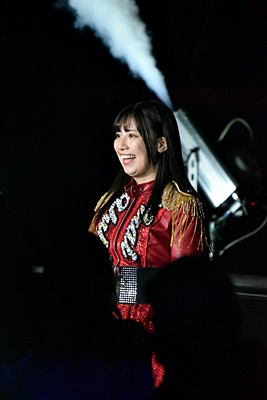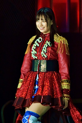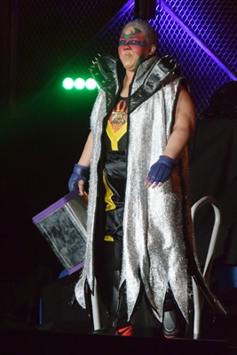 「Hellion〜Erectric Eyes」が鳴り響き、アジャ様がステージに登場(左写真)。