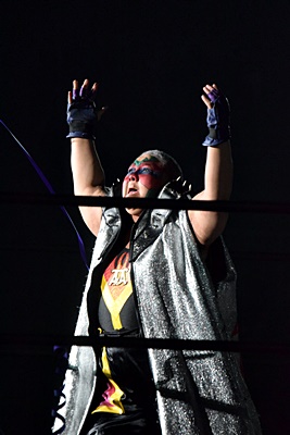 にこやかに花道を進む(左写真)。アジャ戦を前にしてこれだから恐るべし。