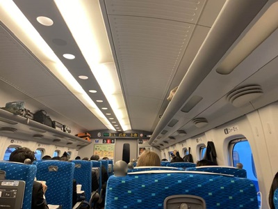 新大阪過ぎたらちょっと人減ったがまだ満席近い。
