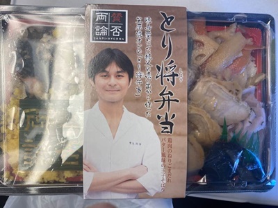 東京駅新幹線改札内で買った「賛否両論」の「とり将弁当」を京都駅辺りで開ける。