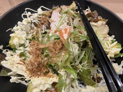 サーモンとアボカドのサラダ。飲みながら「花より熱波3」見る。