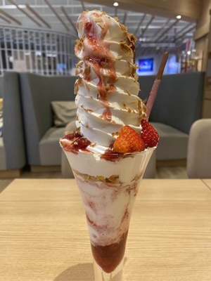 1時間ちょいで出て「からふね屋」に移動。ジャンボイチゴパフェ。するとお腹の調子が悪くなりトイレに駆け込む。パフェのせいではなくビールの飲み過ぎ。