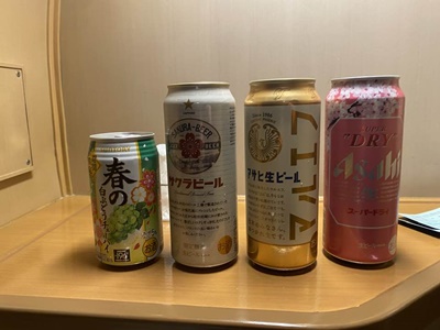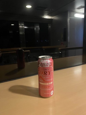 車窓とスーパードライさくらパッケージ。