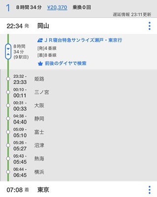 7人で精進落としの昼食を姉宅近所の「MEIGEN-AN」で摂り、自分だけ一足早くバスで岡山駅に。普通だったら新幹線で今日じゅうに帰るのを目指すんだろうが、エクスプレス予約見ても窓側が全然空いてない。ならば、と、岡山駅のみどりの窓口で今日のサンライズの空きを聞いたら安いノビノビとソロは満席だがシングルは空いてる、と。新幹線プラス4000円だし、もう岡山来ることも少なくなるし乗っとくか、ということで購入。カードで払おうとして暗証番号なんだっけ?となるがいつもの番号で良かった。まるで不審者。合計21470円。こういう時のためにキープしておいた旅費38100円はこれで使い切った。香典とタクシー代が予想外の出費か。まあ何とかなるだろう。