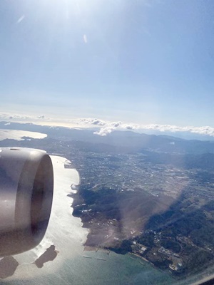 Peach MM319便に搭乗、35分に動き出す。離陸は42分。