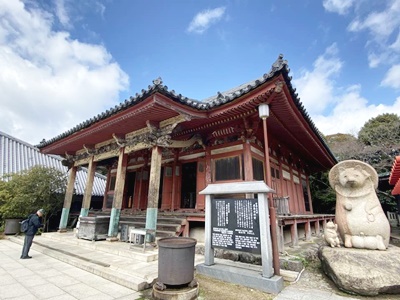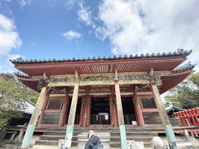 時刻は11時30分。12時1分に琴電屋島駅を出発するシャトルバスがすぐに戻るようならあんまり時間ないなあと思ったが、調べたら13時18分発だったので新屋島水族館行くことに。新屋島水族館に行くには屋島寺を通過する必要がある。東大門。
