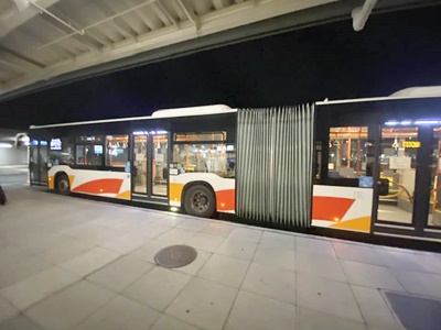 通路を渡り、階段を降りて連絡バスに乗る。