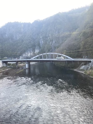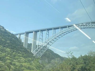 広島空港大橋(広島スカイアーチ)。自動車専用で、現在日本一のアーチ橋だそうだ。空港から県北・山陰に行く道路らしいから通ったことはないな。