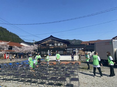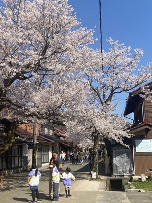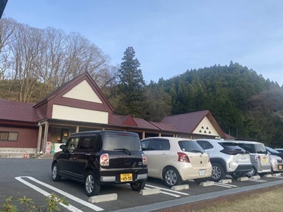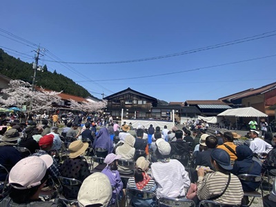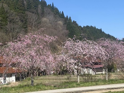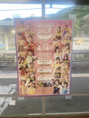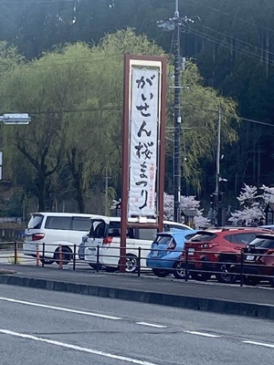 新庄村に向かう道は混雑が予想されていたが、コミュニティバスは順調に8時54分に道の駅がいせん桜新庄宿に到着。今日までががいせん桜まつり。駐車場はすでに満杯で、プロレス観戦客はここには停めるなという掲示も出ていた。