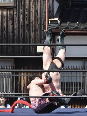 中野の入場シーンが後ろの古い建物(脇本陣)に似合う。