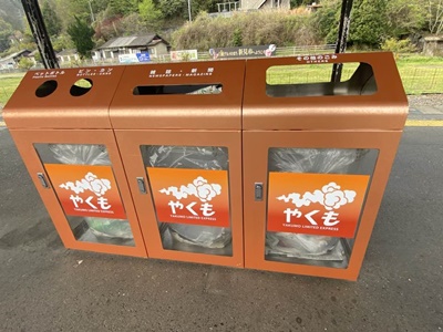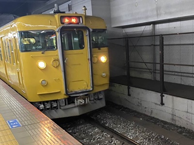 ゴミ箱も「やくもブロンズ」。5番ホームにさあもうすぐ39分発のやくも6号入線、という時点で東京ばななを部屋に忘れたことに気付く。たった1000円だが、ホテルに迷惑かかるのも何だし、とホテルに取りに行く旨電話。せめて新型車両の写真撮ってから行こうかと思ったが、やくもは今や全席指定席、指定の時刻に乗らなかったら「後の列車の自由席に乗車」ということはできない。急いで駅員に次のやくもに変えてもらい、ホテルに戻る。全くバカだ。指定席変えてもらう時にiPhone窓口に忘れるし。