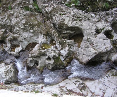 「甌穴」って何?と思って調べると河原にあるこういう奴のことらしい。