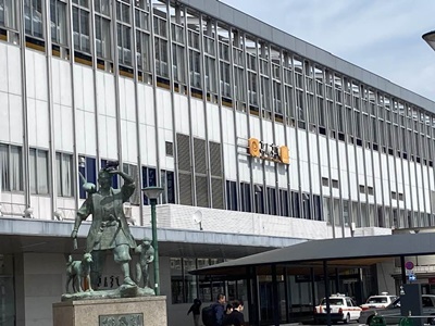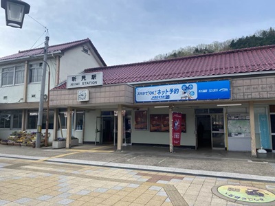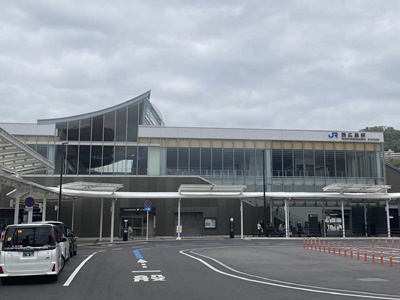 8時過ぎに喪服着てチェックアウト、新見駅に。