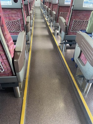 船内はきれいなカーペット敷。この船まだ新しいからな。
