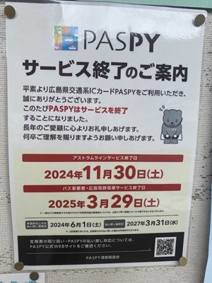 おおPASPY終わるのか。SuicaやICOCAに負けたか。