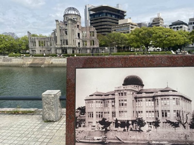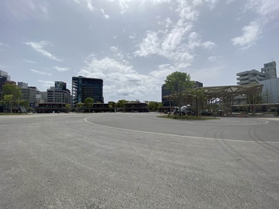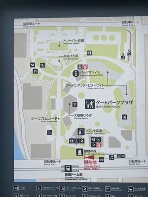 車内でひろしまゲートパークの広告見た(2023年3月31日オープン)ので、旧広島市民球場跡地がどうなったか見るために原爆ドーム前で降りる。案内図。