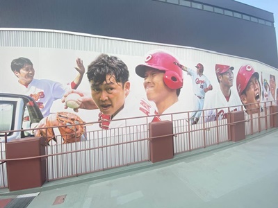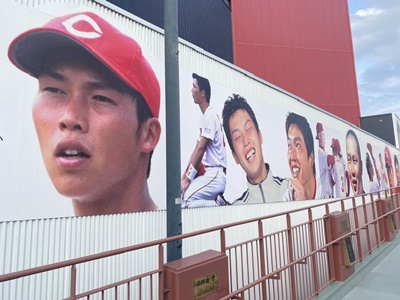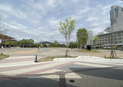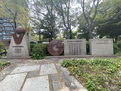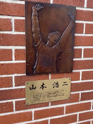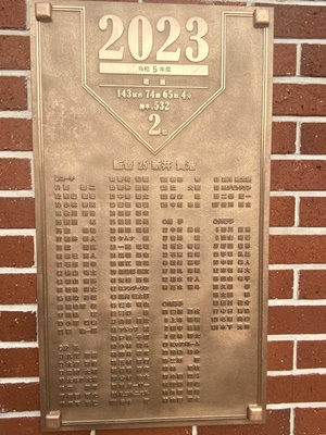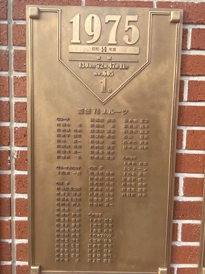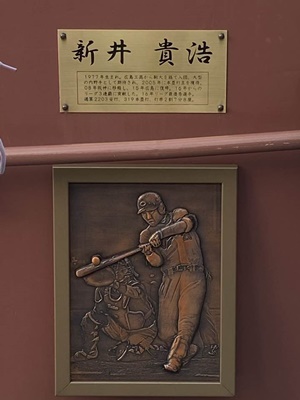 旧市民球場だった痕跡はこれだけ。なんか外野スタンドの一部を残すって話もあったけど見当たらない。後で調べたらベンチの一部に使われてるだけらしい。